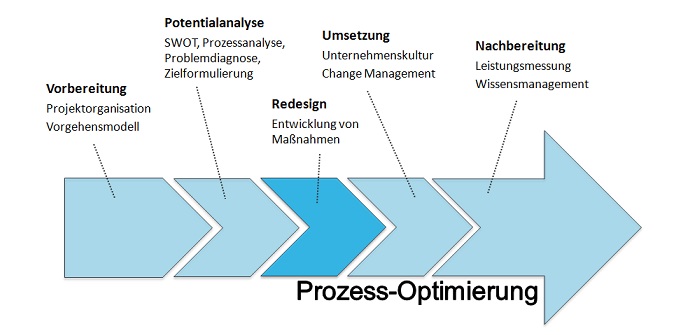Im Rahmen von Prozessoptimierung werden starre Hierarchie-Vorstellungen innerhalb eines Unternehmens aufgelöst. Dies bedeutet, dass sowohl das Management als auch die Angestellten in ihrer Denkweise von der sogenannten Aufbauorganisation zu einer Ablauforganisation wechseln. Nur unter dieser Voraussetzung können Probleme innerhalb der bestehenden Prozesse analysiert und optimiert werden, was den Weg zu mehr Erfolg ebnen soll. Die gesamten Vorgänge werden also im Hinblick auf Prozesse betrachtet sowie verbessert und nicht in Hinblick auf den organisatorischen Aufbau.